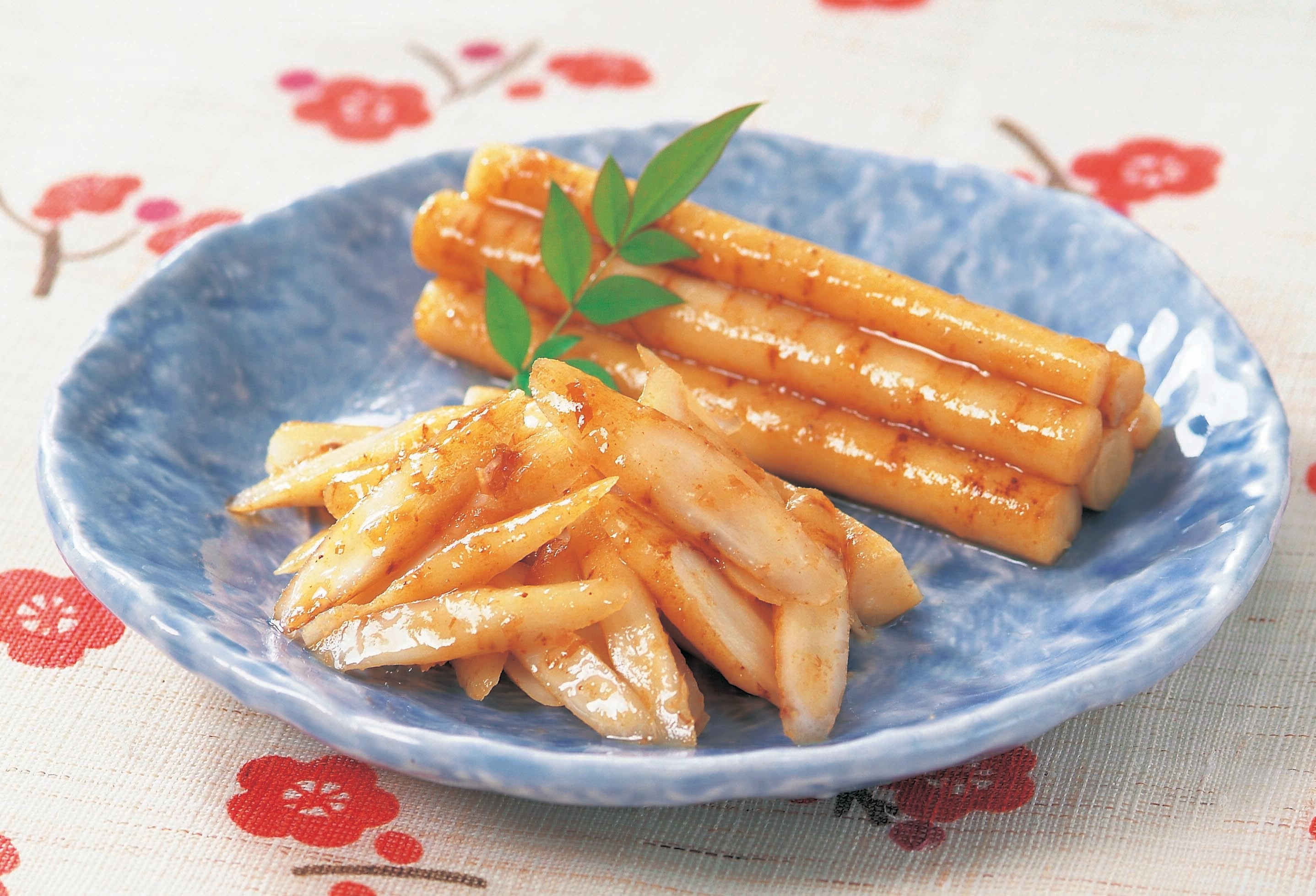 国産の若採り里ごぼうを京都の梅肉と和えて甘酸っぱく仕上げました。